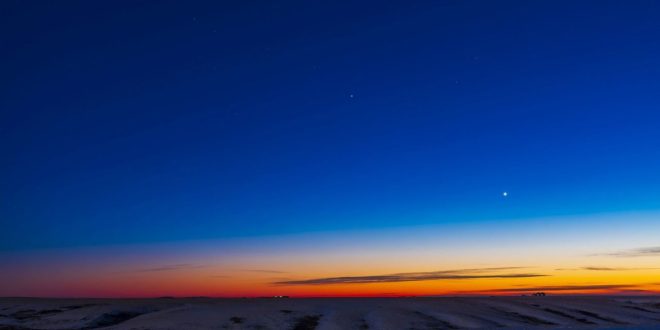 وقالت: "عادةً ما يكون كوكب الزهرة أول ما يظهر"، مضيفةً أنه سيكون ألمع جسم في السماء بعد الشمس والقمر، وسيكون توهّجه أبيض ثابت وساطع عند الأفق الغربي بعد غروب الشمس.