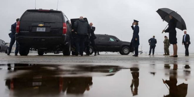 تداول نشطاء على مواقع التواصل الاجتماعي مقطع فيديو للحظة تظهر على ما يبدو “تعثر” الرئيس الأمريكي، جو بايدن، خلال نزوله على درج الطائرة الرئاسية في ميشيغان.