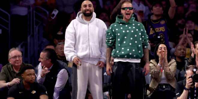 اختار بيبر سترة رياضية خضراء منقّطة بالأبيض مع قبّعة، ونسّقها مع بنطال جلد أسود، وحذاء رياضي أبيض، ونظارات شمسية، في إطلالة جمعت بين الطابع الرياضي والجرأة العصرية.