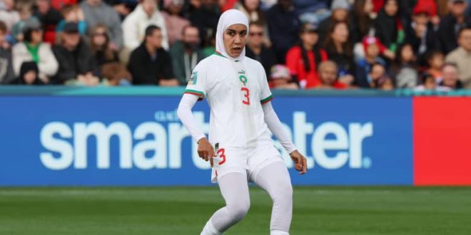 وظهرت المدافعة المغربية البالغة من العمر 25 عاماً، وهي ترتدي الحجاب أثناء ظهورها في مباراة منتخب بلادها والمنتخب الكوري الجنوبي، لتكون أول لاعبة تفعل ذلك على مر تاريخ مونديال السيدات.