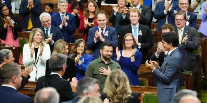 وشكر زيلينسكي كندا على دعمها السياسي وأضاف أنه ممتن لقيادة كندا في دعم “التحرك الأوكراني نحو الناتو”، إذ تحاول أوكرانيا الحصول على عضوية الانضمام إلى حلف شمال الأطلسي.