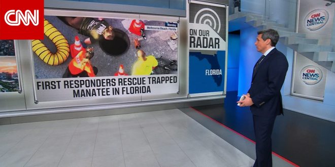 تدخل فريق من لجنة فلوريدا لحماية الأسماك والحياة البرية لإنقاذ خروف بحر بعدما علق داخل بالوعة تصريف مياه الأمطار.