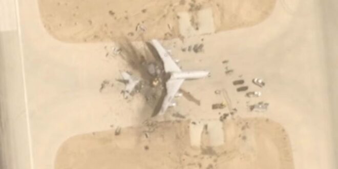 — تُظهر صور الأقمار الصناعية الجديدة التي قدمتها شركة إيرباص لشبكة  بقايا طائرة الإنذار والتحكم المحمول جواً الأمريكية E-3 سينتري (أواكس) المدمرة، بعد ضربة إيرانية استهدفت قاعدة الأمير سلطان الجوية في السعودية في 27 مارس/آذار.