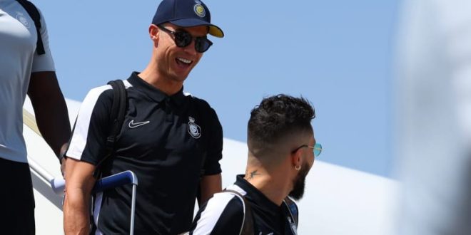 ونشر نادي النصر، عبر حسابه في منصة إكس (تويتر سابقًا)، لقطات مصورة من وصول لاعبيه إلى طهران، وظهر خلالها كريستيانو رونالدو مبتسمًا.