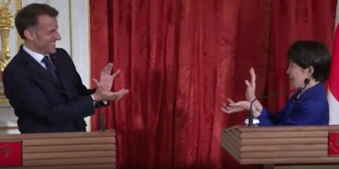 أظهر مقطع فيديو طريف الرئيس الفرنسي إيمانويل ماكرون ورئيسة الوزراء اليابانية، ساناي تاكايتشي وهما يقلدان حركة "كاميهاميها" الشهيرة من سلسلة الأنمي "دراغون بول" في ختام مؤتمر صحفي، في مشهد غير متوقع، حيث أثار المقطع تفاعلًا على وسائل التواصل الاجتماعي.