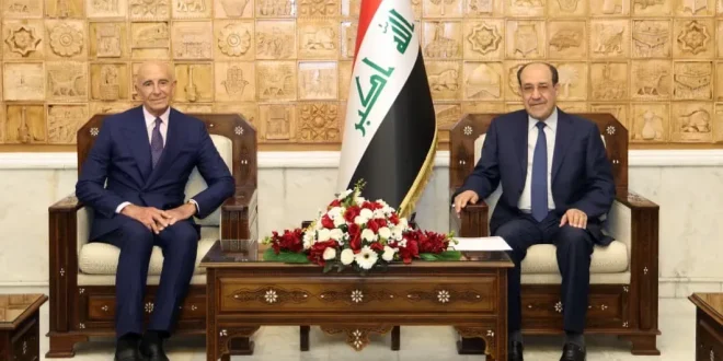 بحث زعيم ائتلاف دولة القانون نوري المالكي، يوم الجمعة، مع المبعوث الأميركي الخاص الى سوريا، توم باراك، تطورات المشهد