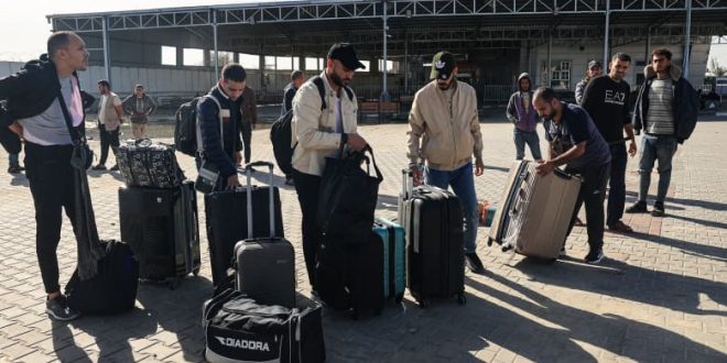 ووصلوا إلى المعبر، وهم يدفعون عربات محملة بحقائب السفر، على أمل العودة إلى ديارهم بعد ما يقرب من سبعة أسابيع من القتال.