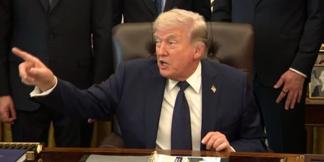 رفض الرئيس دونالد ترامب تحديد جدول زمني لحل الحرب مع إيران يوم الخميس، قائلاً للصحفيين في البيت الأبيض: "لا تستعجلوني". وبدا الرئيس ترامب متوترًا أثناء إجابته على أسئلة الصحفيين في المكتب البيضاوي، وخاصةً فيما يتعلق بموضوع إيران والجدول الزمني لإنهاء الحرب.