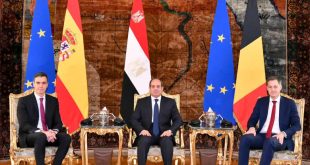 استقبل الرئيس المصري، عبدالفتاح السيسي، الجمعة، رئيسي وزراء إسبانيا وبلجيكا، وأجرى الزعماء الثلاثة مباحثات ثلاثية مشتركة لبحث تطورات الأوضاع في قطاع غ زة، وأكد السيسي أهمية الاعتراف بالدولة الفلسطينية حتى لو كانت منزوعة السلاح. وقال السيسي في مؤتمر صحفي مشترك بعد الاجتماع: “تناولت مباحثاتنا التطورات في قطاع غ زة خلال …